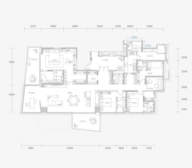 产品结构:纯2t2户型,麓湖四代宅,高得房率新产品