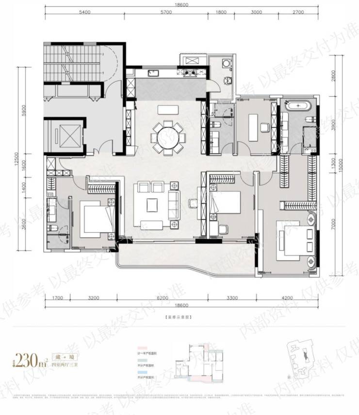 建面约230平套四