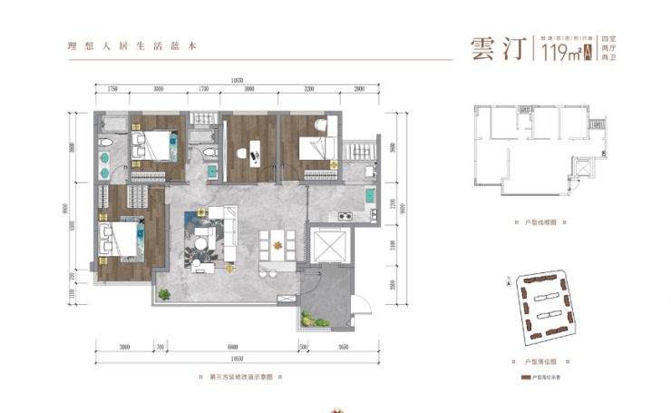 建面约119平套四