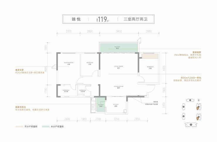 建面约119平套三