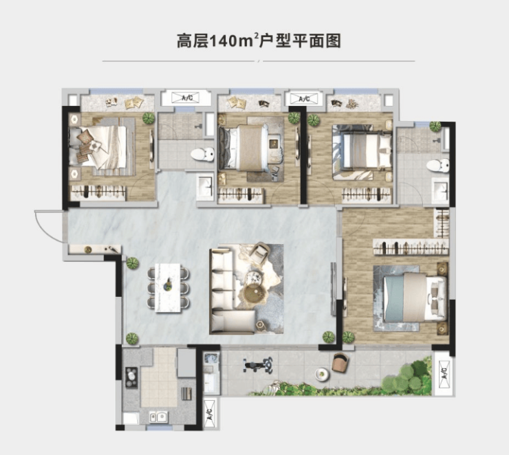 建面约140平套四