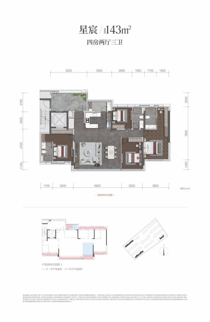 建面约143平套四
