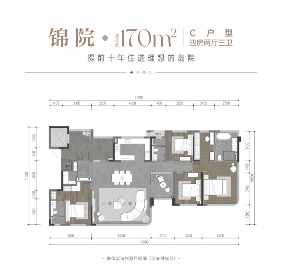 建面约170平套四