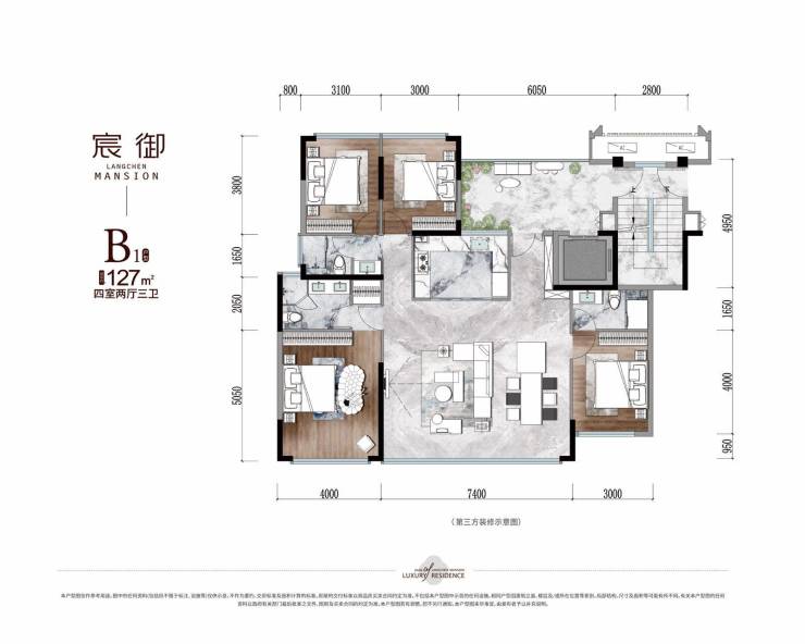 建面约127平套四