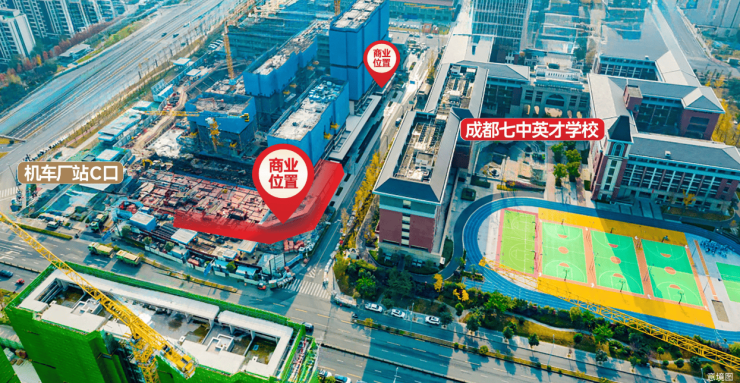 •项目1.5公里内有机车厂、二仙桥、八里庄、十里店四个地铁站点,最近的17号线机车厂站C口出站即达项目,是周边众多小区、七中英才学校前往地铁站的必经之路,人群来往不绝。