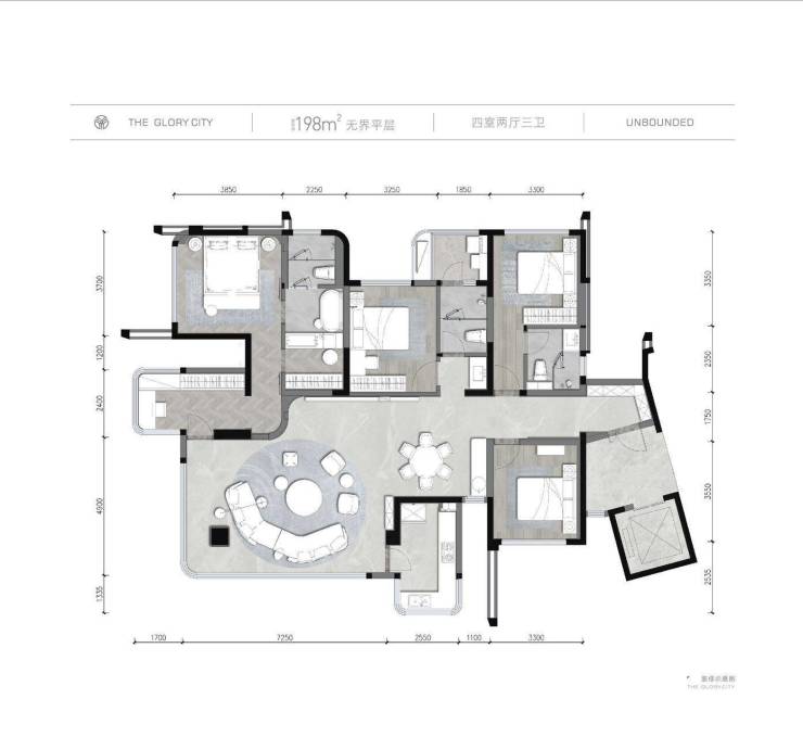- 建面约193-198㎡-四室两厅三卫