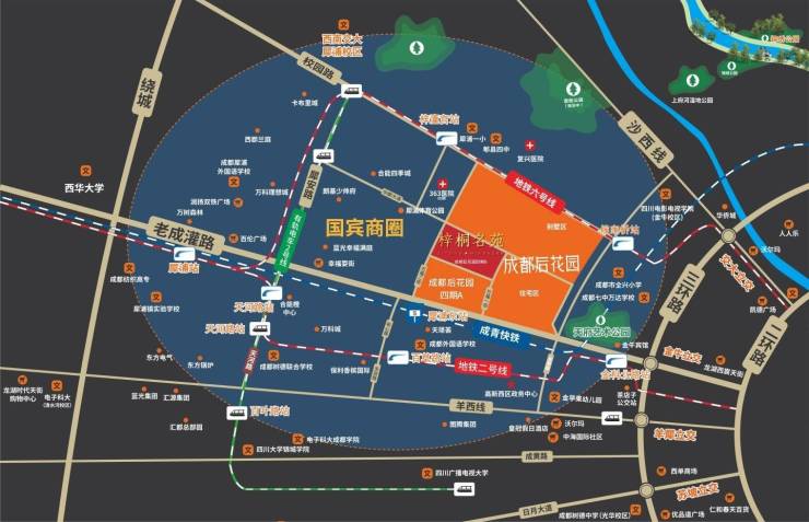 1.地段优质:国宾西3.5环黄金中轴,金牛宾馆西2.8km,千亩大盘收官之作,主城低密住区稀缺,周边3000亩天府艺术公园环伺,宜居性拉满