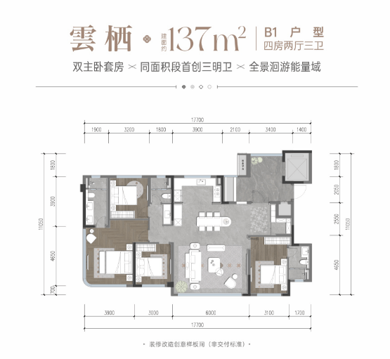 6.精装标准高:精装标准约3680元/㎡,全屋采用大金中央空调、德国威能地暖、瑞士吉博力卫浴三大国际品牌系统,并配置全屋智能家居,品质感十足。
