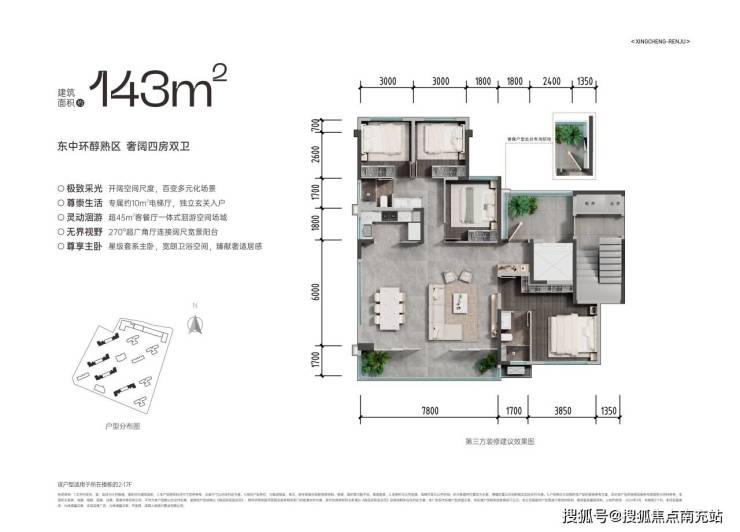 山禾悦——建面约143㎡(方厅)约10㎡前厅空间,增添入户仪式感。超45㎡中央社交场,是家庭聚会与朋友交流的理想场所。270°超广角视野,带来震撼的视觉享受。
