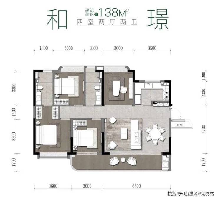 • 四室两厅双卫,动静分区明确