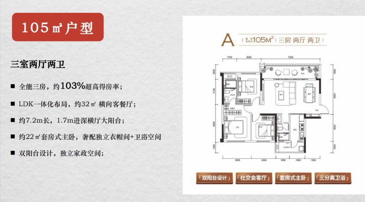 建面约105平套三