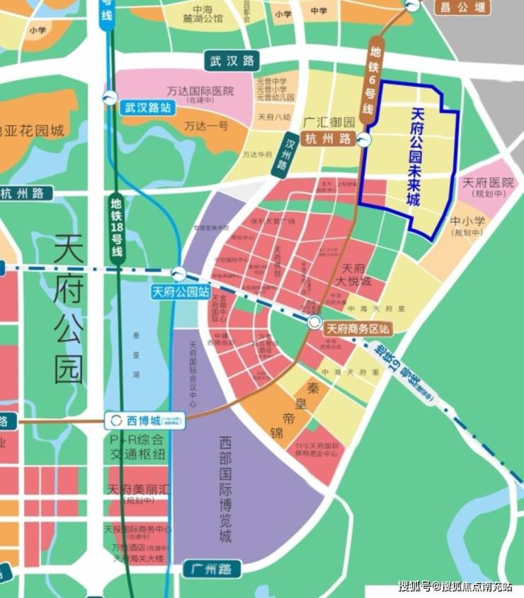 【天府公园未来城】恰好位于天府中央商务区的核心区域,在交通、商业配套、生态环境等方面具备其他区域难以企及的优势,真正实现下楼即中心。交通优势极为显著,整个区域被超过8条主干道环绕,有力保障了与全成都的高效连接。区域内部更是覆盖了5条地铁线路,分别为1、6、16、18、19号线。其中,1、6、18号线已开通运营,19号线也已动工建设,16号线则作为远期规划线路。从如此密集的地铁分布不难看出,政府对该片区高度重视,这里无疑是当前成都交通最为便捷、通达度最高的区域。而天府公园未来城就坐落于地铁6号线和19号线交汇的天府商务区站,属于双地铁上盖,出行便利程度不言而喻。