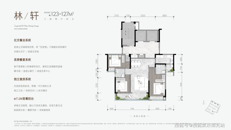 ### 【产品规划及亮点】人居九林语项目占地48亩,规划有123 - 203㎡平层产品。建筑立面采用Low - E中空玻璃搭配铝板和石材,不仅美观大方,还彰显品质。其打造的区域内稀缺大平层产品,拥有阔尺开间以及宽境阳台,采光十分充足,为业主带来极佳的居住体验。### 【户型品鉴】- **林/轩 - 123 - 127㎡**:拥有约7.1m宽幕阳台,为居住者提供宽敞的户外休闲空间。