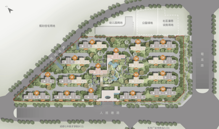 2.教育资源优质:项目西南侧紧邻成都英才学校,这是一所K12公办学校,由成华区和成都七中合作打造。按照2024年成华区小学划片,项目在双林小学馨韵校区的划片范围,小升初对口的4所初中基本是成华区最佳。
