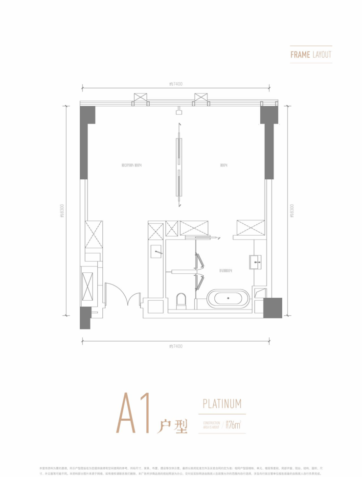 76平米赠送实得86平米。(单身贵族青睐的臻稀房源)
