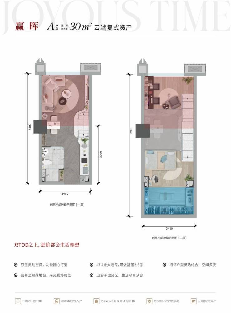 2.产品王炸:4.2米LOFT得房率最高336%,30㎡实得57㎡可做套二,清水交付可全改,总价50万起门槛极低,租金对标周边3000+稳赚