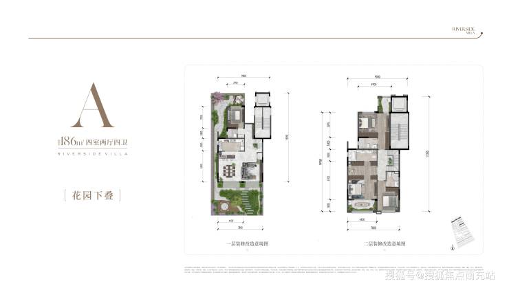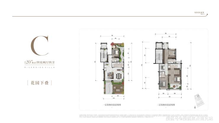 **花园下叠**——2 + 1 层空间布局,一楼环绕式庭院搭配阔尺创变空间,为生活增添更多精彩。