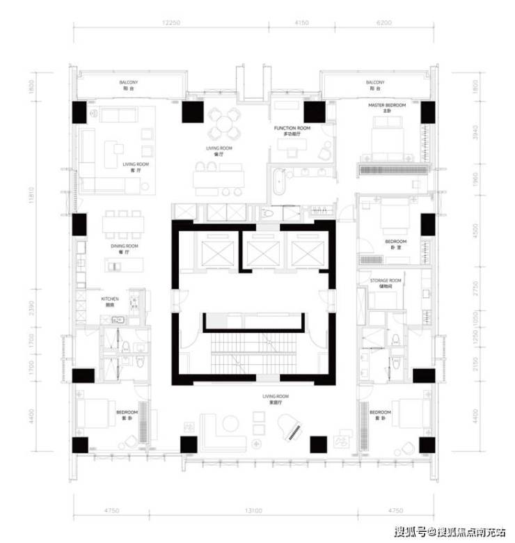 项目规划3栋超高层住宅及1栋商业综合体,采用全玻璃幕墙立面系统,呈现晶莹剔透的现代美学。主力户型为250㎡四房三卫格局,创新双套房设计满足多代同堂需求。特别打造的520㎡楼王户型,以"一层一户"的私密格局,重新定义顶豪生活尺度。