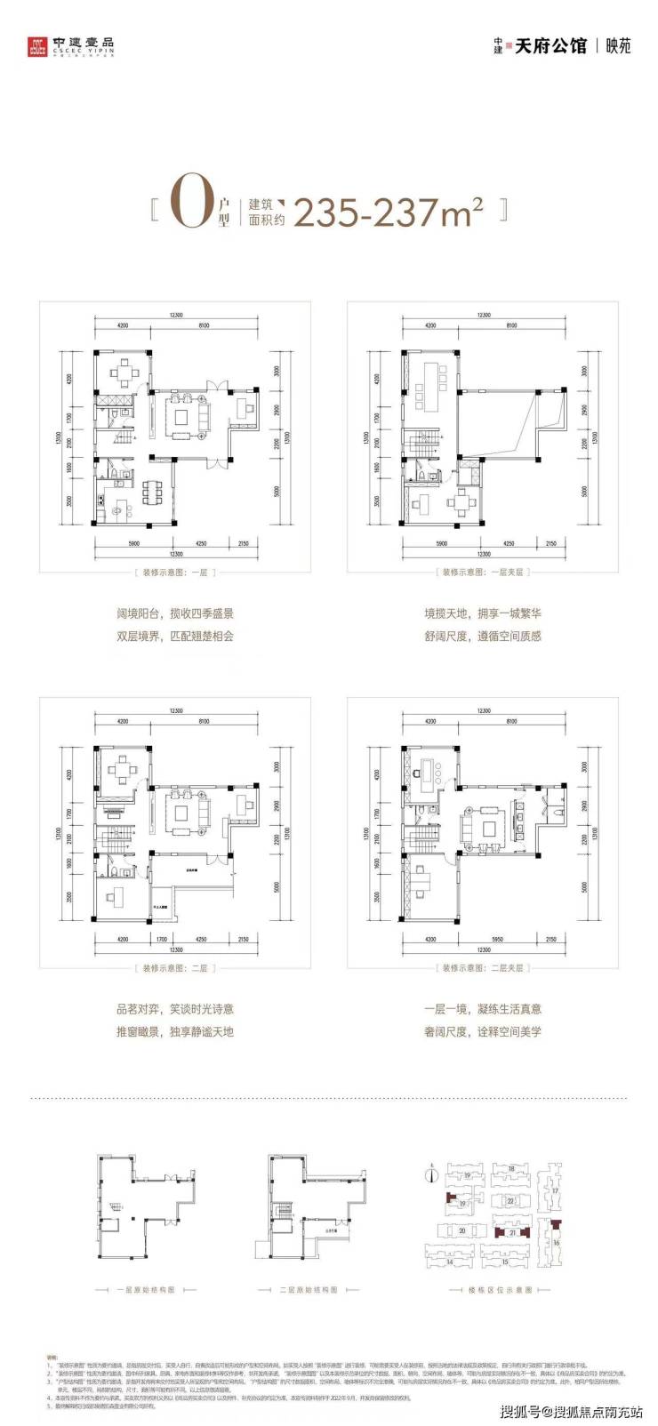 【中建天府公馆-映苑基础详情】所属板块:新川板块开发商:由实力强劲的央企中建三局倾力打造。中建三局在成都建筑领域地位举足轻重,众多知名地标建筑皆出自其手,比如备受瞩目的IFS、热闹繁华的太古里、时尚潮流的来福士广场以及重要交通枢纽T2航站楼等。物业公司:中建壹品物业。值得一提的是,该物业于2022年荣获中国物业服务百强企业称号,凭借专业的服务能力,为业主带来高品质居住体验。价格情况:中建天府公馆-映苑入手总价260万起。其主力总价范围在300 - 450万,主力单价为21000 - 31000元/㎡。这样的价格区间,既能满足不同购房者的预算需求,又凸显了该楼盘的性价比优势。在售楼栋状况:目前正在销售的楼栋有14栋、19栋和20栋。楼层及梯户比:每层楼采用1梯2户的贴心设计。这种设计极大提升了居住的舒适度与便捷度,有效缩短了业主等待电梯的时间,充分保障了生活的私密空间,让业主能够享受静谧的居住环境。层高:该楼盘整体层高约6米,不过部分户型层高为5.7米。较高的层高可营造出极为开阔的空间感,给业主带来超舒适的居住感受。在装修时,业主无论是想打造大气磅礴的风格,还是温馨舒适的格调,都能轻松实现,满足多样的审美追求。面积:楼盘的建筑面积区间约为86 - 312㎡,是专为城南精英量身定制的CEO公馆。丰富的面积段户型,充分考虑了各类家庭结构和生活需求。温馨的小家庭能在此找到温馨舒适的小窝,人口较多的大家庭也能选到宽敞合适的住所,真正做到“各得其所”。物业费:每平方米收取6元物业费。这一合理收费标准的背后,是优质物业服务的有力保障。物业提供小区安全防护、环境卫生清洁、设施设备维护等全方位服务,全力为业主营造一个舒适宜人、整洁有序、安全放心的居住环境。交付标准:楼盘以清水形式交付,给予业主充分的装修自主空间。业主可根据自身喜好和生活习惯,尽情发挥创意,精心设计并打造梦想中的家园,充分实现个性化居住需求。