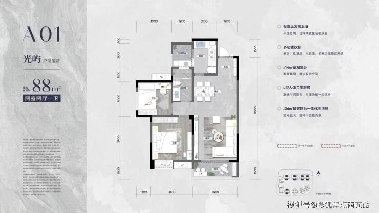建面约88㎡户型