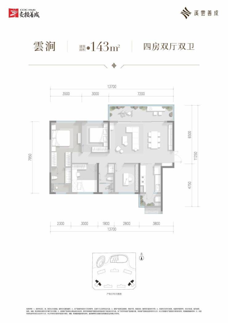 建面约143平套四