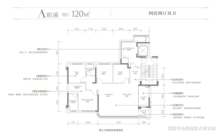 1. 120㎡套四双卫(A户型):方正通透,实用全能