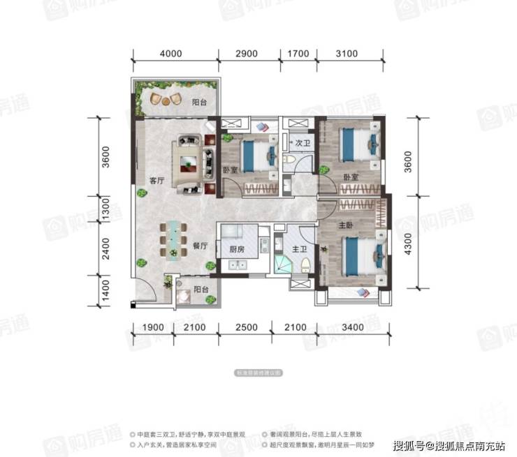 户型设计:99-143㎡(99㎡南向、119㎡南北通透、138㎡东北向、143㎡东北/西南通透)
