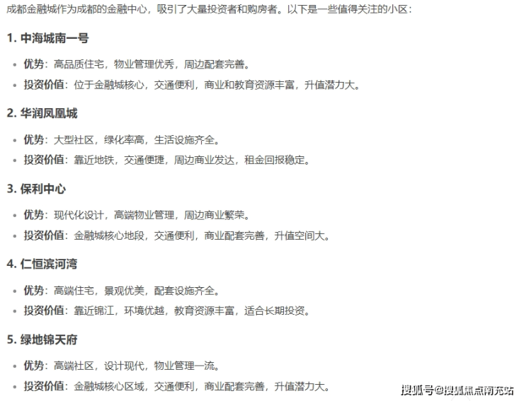 DeepSeek给出的答案是:中海城南一号、华润凤凰城、保利中心、仁恒滨河湾和绿地锦天府都是金融城值得关注的小区。