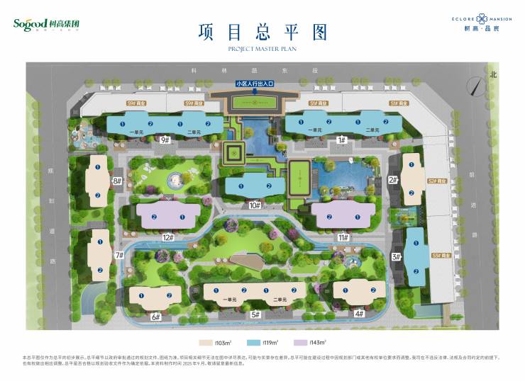 围合式布局:创新多围合楼栋排布,最大楼间距约165米