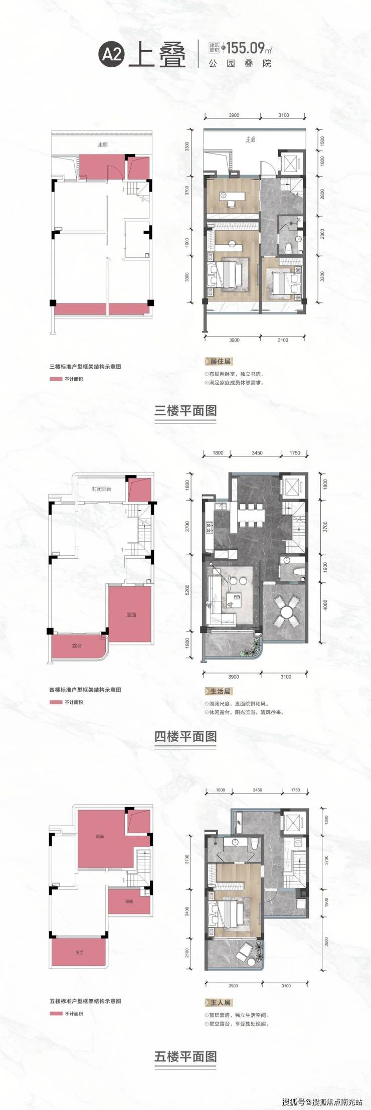 上叠(A2)建面约155㎡最大实得面积约300㎡