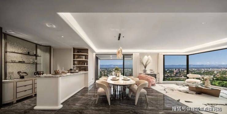 ### 立面美学的温情表达有别于传统豪宅冷峻的极简立面,青羊润府创新采用宝格丽酒店经典格网元素,配以水晶塔冠造型。米白与浅香槟金的暖色调组合,既保留奢华质感,又增添人文温度,与城西低调内敛的气质相得益彰。