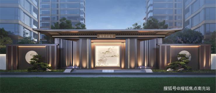 项目斥资千万打造新中式殿顶门庭,传承东方建筑美学精髓,彰显项目高端品质定位。