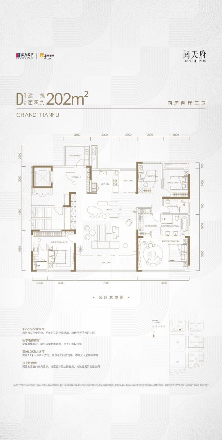主力建面约199 - 202 - 252㎡天际观邸2T2H