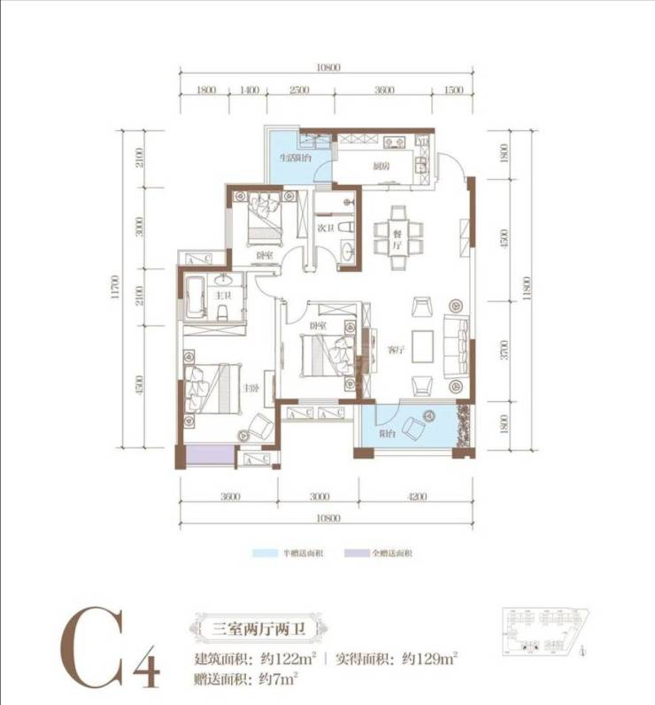 面积122平米舒适性套三双卫 朝南