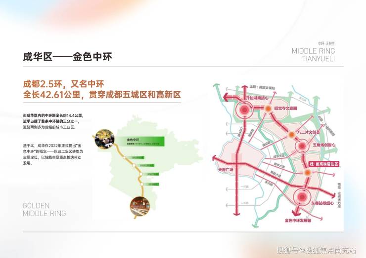 3、成华在2022年正式提出“金色中环”的概念——以老工业区转型为主要定位,以轴线串联重点板块带动发展;而本项目所在位置处于“金色中环”区域的现代居住风貌区,政府已引入大型开发商(越秀地产、华润置地、华建等知名品牌),打造主城核心高端居住区;并且对区内进行旧改城市更新,提升整个区域的居住品质。拥有高质量的消费群体;