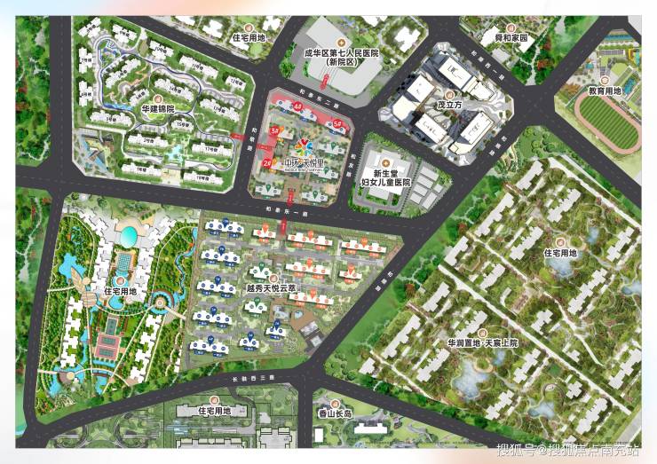 5、我们项目正对面是成华区第七人民医院(按三甲标准修建),仅一街之隔,是一所由政府举办的区级综合医院,为市、区社保定点医疗机构;项目右侧是新生堂妇女儿童医院,是一家高规格私立医院,使该辖区能享受医疗便利,项目南侧约500米是成华区教育局与成都树德中学携手组建的成都和悦初级中学,2025年内将开工建设,同时能为项目带来大量的流动性人群以及高质量消费力。