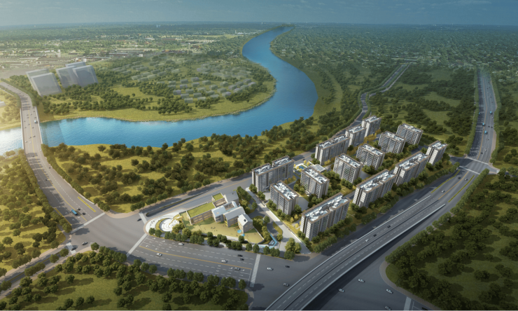 择址协同创新区门户 一步山湖河林园生态