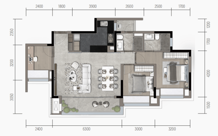 主卧套房:3.2米大开间主卧,私享独立卫浴