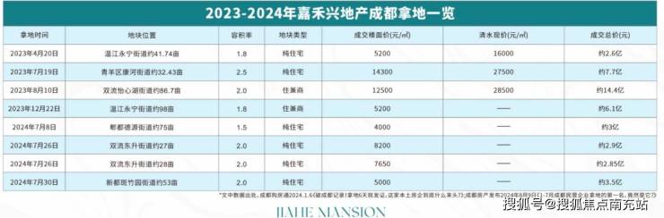 ### 开发商实力背书嘉禾兴地产始终坚守稳健经营的理念,坚持以自有资金开发项目。在 2023 年,该企业表现十分突出,连续竞得嘉禾华府、嘉禾宸府等四宗优质地块,总面积达 259 亩,总投资约 30 亿元,在成都民营房企拿地规模中位居前列。其中,嘉禾华府项目更是创造了 6 天极速取证的佳绩,首开便实现了 2 亿元的销售额。企业以“精工筑家”为核心理念,始终坚定地持续兑现品质承诺,致力于为业主打造高品质住宅。