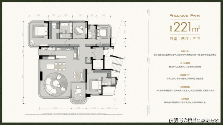 1.室内打造景观中轴 | 2.全空间独立花园配置 | 3.主城唯一室内四花园