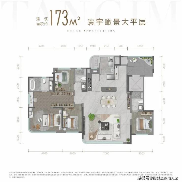 作为区域标杆项目,保利新川天珺首推1号地块,首批次推出104套臻品房源,涵盖143㎡、173㎡、205㎡三大奢阔户型,其中173㎡与205㎡户型尤为亮眼。