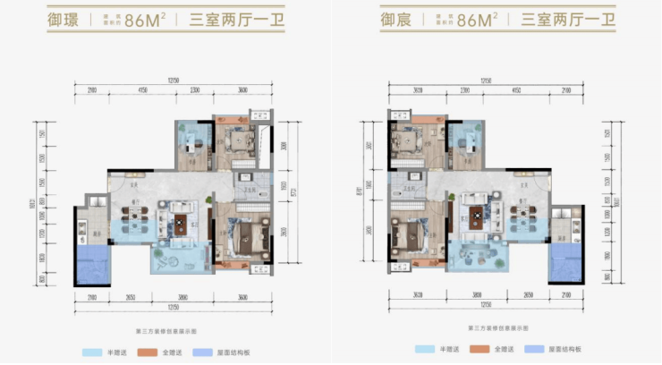 对于刚需购房者和改善型需求者而言,86㎡的三室两厅单卫户型都是不错之选。此户型赠送面积约14㎡,赠送后实得面积约100㎡,整体方正,产品丰富多元。该户型在采光设计上极为出色,居室内及客厅都有着大面积采光,所有房间皆为全明格局,是典型的阳光户型。居住在这样的房子里,每一位追求高品质生活的住户,都能尽情领略高端住宅区中庭花园带来的悠然惬意,享受舒适生活。