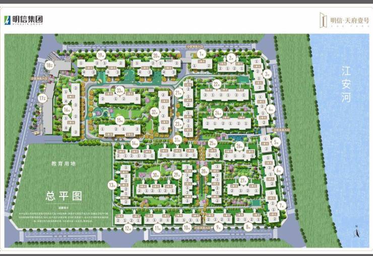4.生态环境优越:被江安河生态景观带环绕,毗邻三江公园(在建)、骑龙公园(规划),打造了“一河三公园”生态体系,居住环境舒适。