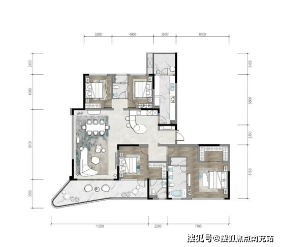 比较特别的是,该户型并没有采用一般大平层流行的大横厅,而是坚持西派比较常用的客餐厅分离设计。