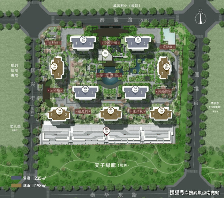 项目占地约52亩,容积率2.5,含5%商业配比,绿地率达35%。为最大化提升居住品质,开发商创新规划:将原规划的17层住宅调整为18-25层高层建筑,通过优化楼栋排布,不仅降低了建筑密度,更实现了更开阔的楼间距,完美契合高端住宅的舒适性需求。