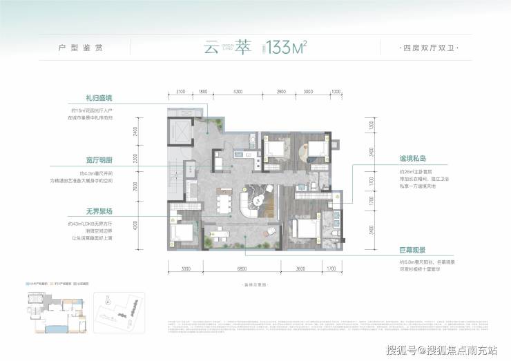 超奢空间:建面约112㎡享超配4房大方厅,采用LDKB一体化设计,消弭空间界限,演绎生活丰盈场景,巧妙打通书房空间,双阳台对望室内更加通透;建面约133㎡享4房大双厅奢阔主卧,幻变空间可做书房、棋牌室,满足家庭全生命周期情景所需。