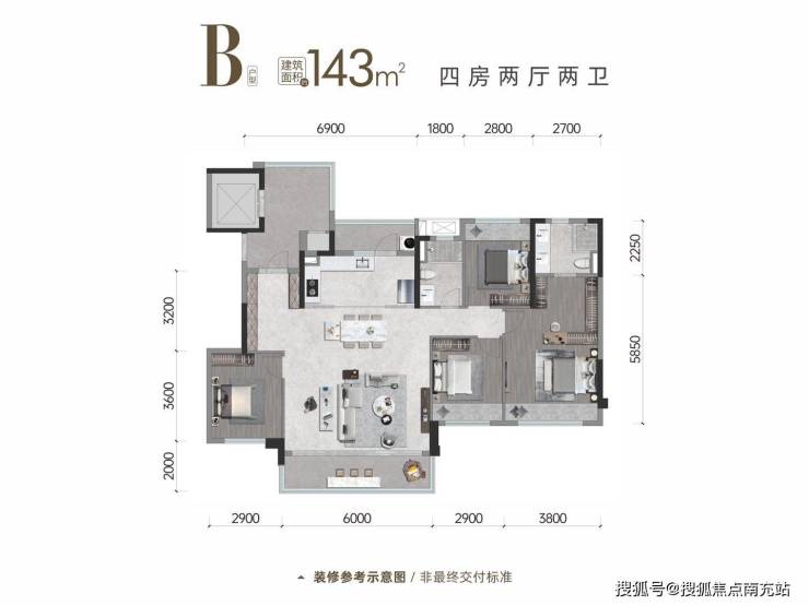 创新采用"无界平层"设计理念,129-212㎡全系四房标配:
