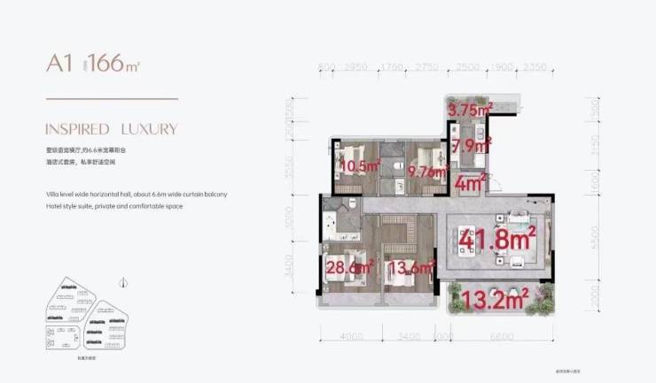 户型面积:166-188㎡大平层(17层)