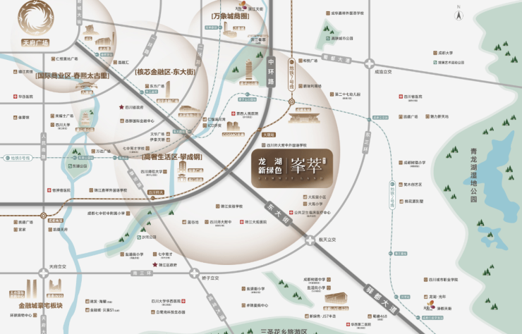 交通:三横三纵三地铁:二环+三环+锦绣大道串联,东大街+静安路+蜀都大道贯通全城,地铁 2/7/30号线多维畅达