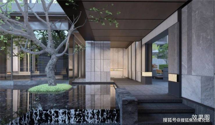 全水系下沉庭院同样充满魅力,松树、水景、置石、绿岛等元素组合,构成隐奢山水画卷。身着中国风雅时装的超模漫步其间,与空间内有序陈列的艺术雕塑、蜀画、漆画等艺术品相互映衬,相得益彰。造景充满诗情画意,选材考究精细,水的灵动、树的盎然、空间的奇思、氛围的营造,这些细节之处,使越秀·望悦的隐奢特质与其他楼盘有了本质区别。